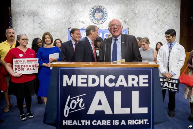 Pesë nga gjashtë demokratët e Senatit që kanë shpallur kandidaturën – Cory Booker i Nju Xhersit, Kirsten Gillibrand e Nju Jorkut, Kamala Harris e Kalifornisë, Elizabeth Warren nga Masaçjuset dhe Sanders – kanë premtuar të kërkojnë “Kujdes Shëndetësor Falas për të gjithë” dikur një propozim i paimagjinueshëm për shumë demokratë për shkak të kostos së tij. Vetëm Senatorja Amy Klobuchar e Minesotës nuk ka pranuar ta përqafojë këtë koncept.