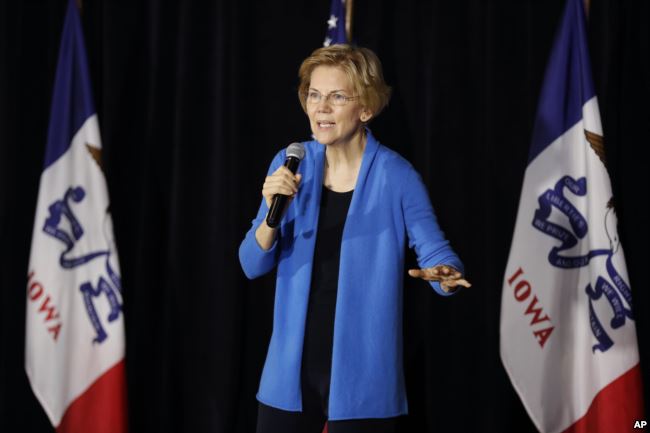 Sen. Elizabeth Warren, D-Mass., speaks to local residents during an organizing event, Feb. 10, 2019, in Cedar Rapids, Iowa.