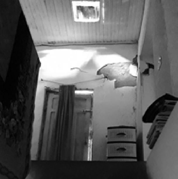 Teksa na shoqëron për të parë dëmet e banesës, ai tregon se e kishte ndjerë edhe tërmetin e parë, atë të orës 03:20, por nuk kishte dalë jashtë dhe kishte vazhduar të qëndronte në krevat. Në momentin e lëkundjeve të dyta, kishte thërritur nënën dhe të dy kishin dalë shëndoshë e mirë nga banesa.