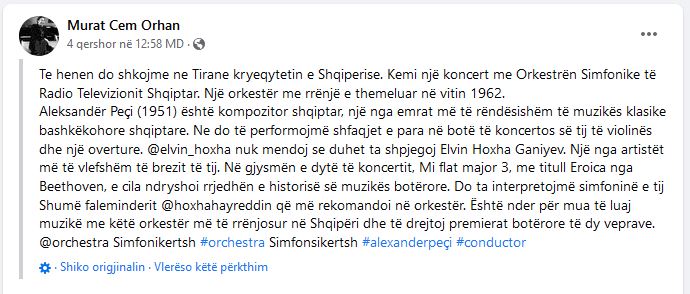 Premierat e mia botërore – më 10 qershor Koncerti per violin “Love” dhe vepra per orkester “Diellore” Nga Maestro Aleksandër Peçi