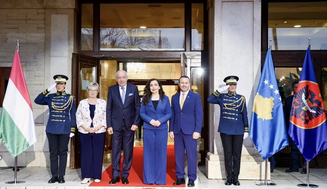 “Sot për herë të parë, qëndroi për vizitë pune në Kosovë, Presidenti i Hungarisë, Tamás Sulyok, së bashku me Zonjën e Parë, Zsuzsanna Nagy. Së bashku me Prindonin i mirëpritëm në Presidencë dhe shprehëm synimin që bashkëpunimi mes dy vendeve tona të rritet në çdo drejtim. Në takimin bilateral me Presidentin Sulyok përsërita se mbështetja e Hungarisë për heqjen e masave të padrejta të BE-së, është thelbësore. Integrimi euro-atlantik i vendit tonë është në dobi të të gjithë qytetarëve tanë, të rajonit dhe të gjithë kontinentit evropian,” shkruan Vjosa Osmani në Facebook./Dosja.al