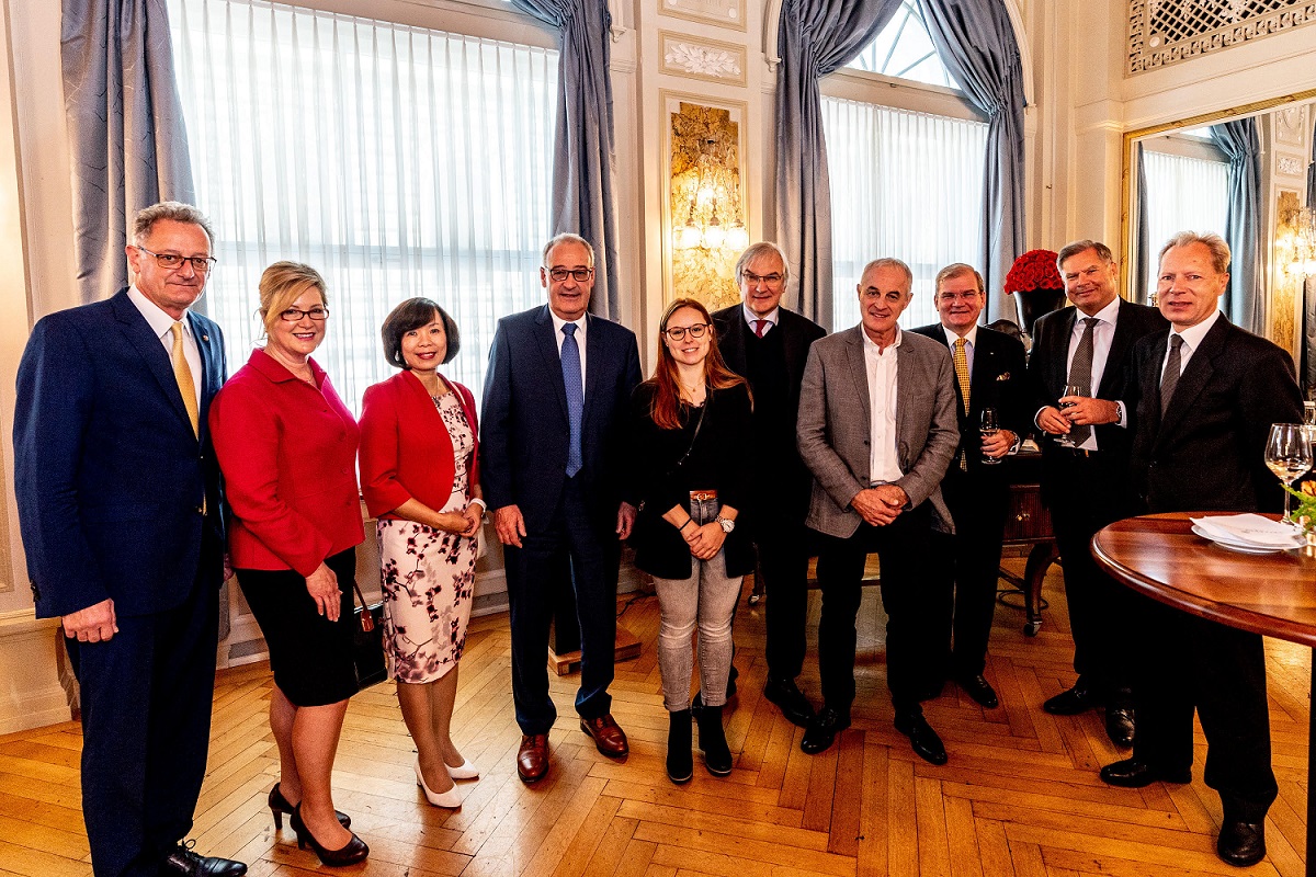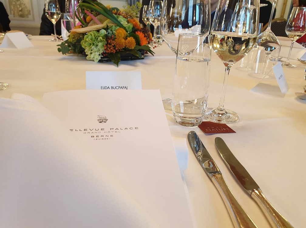 Pas konferencës për shtyp për të pranishmit e ftuar u dha një aperitiv. Pastaj në një nga sallat madhështore të Bellevieu Hotelit u shtrua dreka për nder të Presidentit të Konfederatës z.Guy Parmelin.