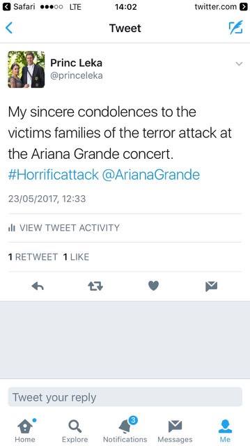 Princi Leka II shpreh ngushëllimet për sulmet terroriste në Arenën e Mançesterit