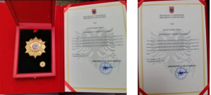 (Mesazh urimi me rastin e dhenies se titullit te larte “Nder i Kombit” dhe dekorimi nga Presidenca e Kosoves “Medalja Presidenciale e Meritave” me motivacionin per “Punen e Jashtezakonshme ne mbledhjen e materjaleve entografik e folklorik dhe zbulimin e qendrave te reja arkeologjike per Arberin mesjetar”)