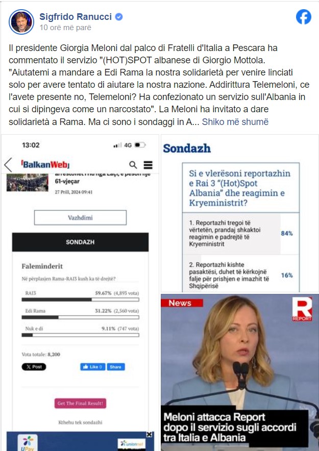 Ndaj deklaratave të Melonit reagoi Sigfrido Ranucci, autori i emisionit “Report”. Ai shkoi edhe më tej duke paralajmëruar publikimin e pjesës së dytë me të tjera investigime.