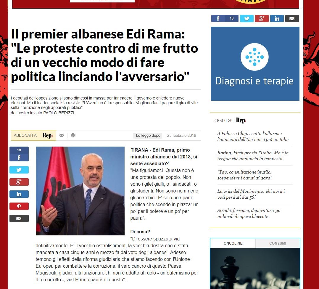 Rama në “La Republica”: Berisha është penduar që nuk më vrau kur ishte në pushtet (intervista e plotë)