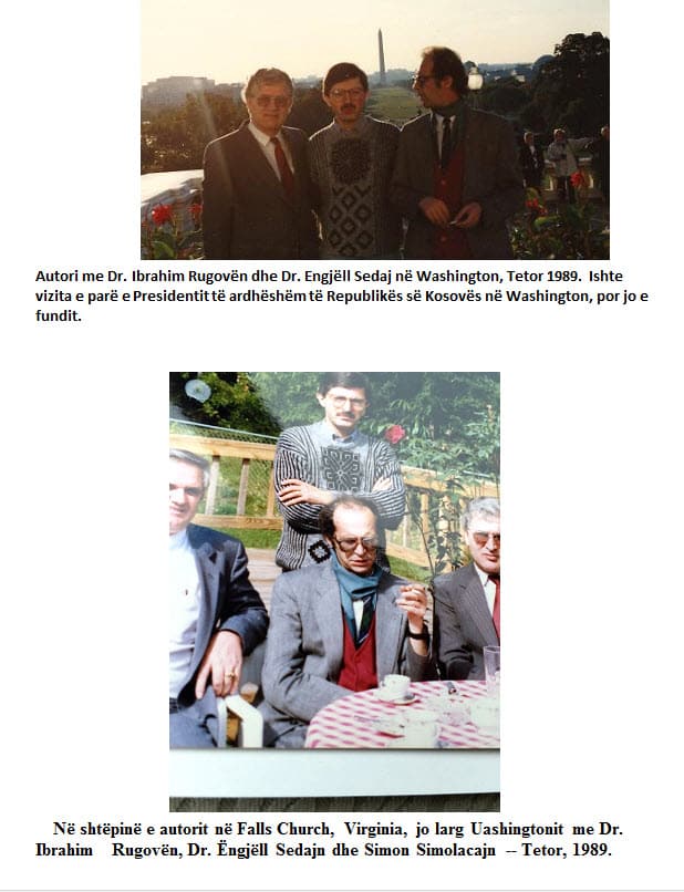 Unë kam kam pasur privilegjin ta takoja, Dr. Rugovën më s’pari si njeri, si intelektual e shkrimtar, por mbi të gjitha si shqiptar, në shtëpinë time në Virginia, afër Washingtonit, tetorin e vitit 1989, në vizitën e tij të parë në Washington.