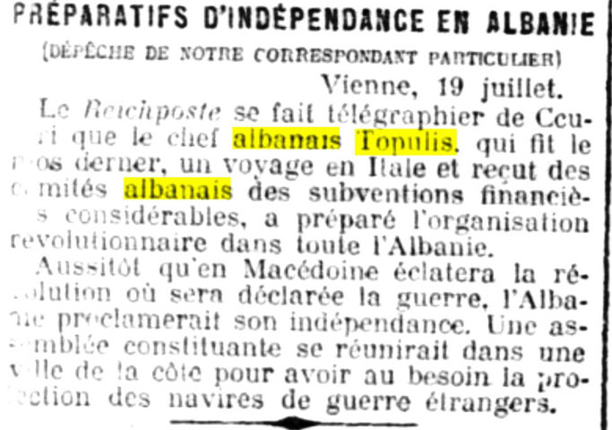 Reichspost (1908)- Çerçiz Topulli ka përgatitur organizimin revolucionar në të gjithë Shqipërinë me qëllim shpalljen e pavarësisë