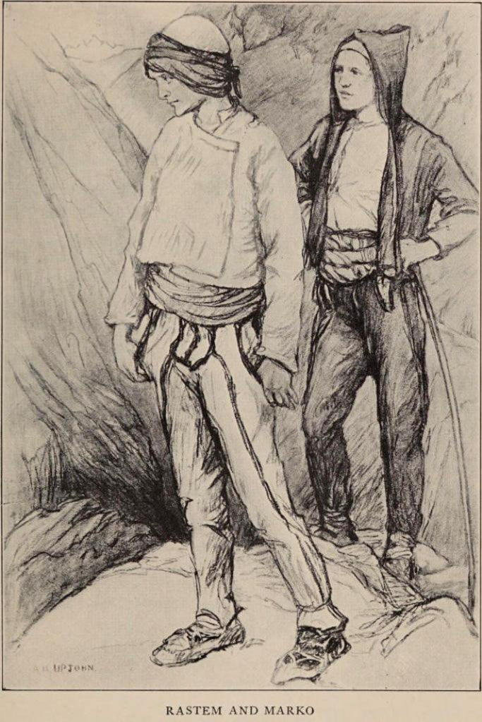 Dy djemtë shqiptarë, Rustemi dhe Marko — Vizatim nga Anna Milo Upjohn