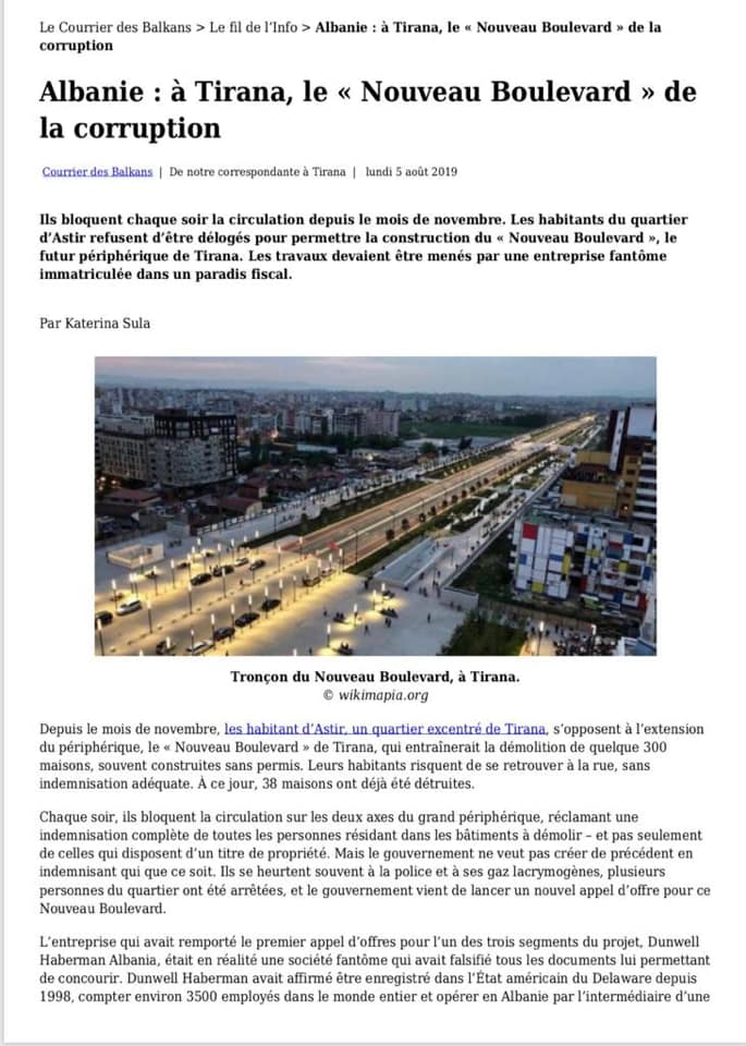 Në zyrën e tij të vendosur jo larg presidencës serbe dhe Parlamentit, Radovan Kupres, themelues i CRTA-s, një OJQ që mbron transparencën në politikë, është gjithashtu i tërbuar. Por për arsye të tjera. “Problemi nuk është vërtet familja Trump në vetëvete. Por klasa jonë politike. Ne jemi një nga vendet më të korruptuara në botë dhe gjithçka është bërë nën dorë”. Ai shqetësohet sidomos për partnerin e Jared Kushner-it, një ndërtues nga Emiratet e Bashkuara Arabe, i cili ka marrë tashmë, para dymbëdhjetë vjetësh, kontratën për zhvillimin e shëtitores dhe zonës së brigjeve të lumit Sava, degës së Danubit që kalon nëpër Beograd. “Është estetikisht shumë e shëmtuar. Ata kanë dëbuar mijëra njerëz që jetonin aty prej dekadash dhe, mbi të gjitha, u kanë dhënë disa pjesë të tokës zyrtarëve të lartë në rrethana të çuditshme”.