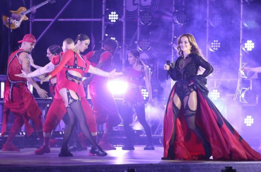 Rita Ora kërcen vallen e Tropojës gjatë koncertit në sheshin “Skënderbej”