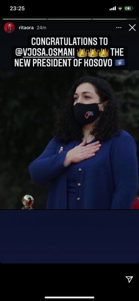 Rita Ora publikon fotografi të Vjosa Osmanit: Urime Presidentes së re të Kosovës!