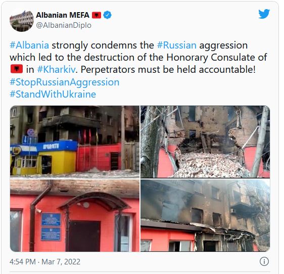 Rusia bombardon me raketa konsullatën e Shqipërisë në Ukrainë