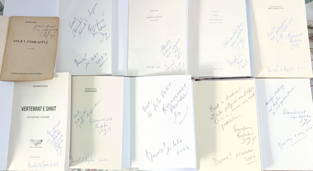 Përveç librit të parë, që e kam blerë në Tiranë, të shtunën e 18 Shtatorit 1976, shënuar dhe në atë libërth të çmuar, të tjerat Golja m’i ka dërguar me përkushtim. Si duket, nga malli për Vlorën, i ishte bërë natyrë e, sa i gëzohej librit të sapobotuar, ma niste dhe mua një kopje. Gjithmonë m’i përmend dy vargje të poezisë së vjetër “Kur iki nga Vlora: Me kokën të kthyer përgjysmë nga ti,/ me një pjesë zemre nëpër rrënjë ulliri…”