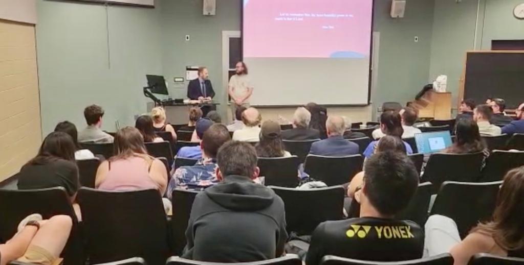 Seminari filloi në orën 3:00 mbasdite, ndërsa ligjërata e Poetit Visar Zhiti u mbajt në orën 4:00. Në auditor ishin rreth 50 studentë, ku në mes tyre edhe studentë shqiptar, anëtarë të AASO.