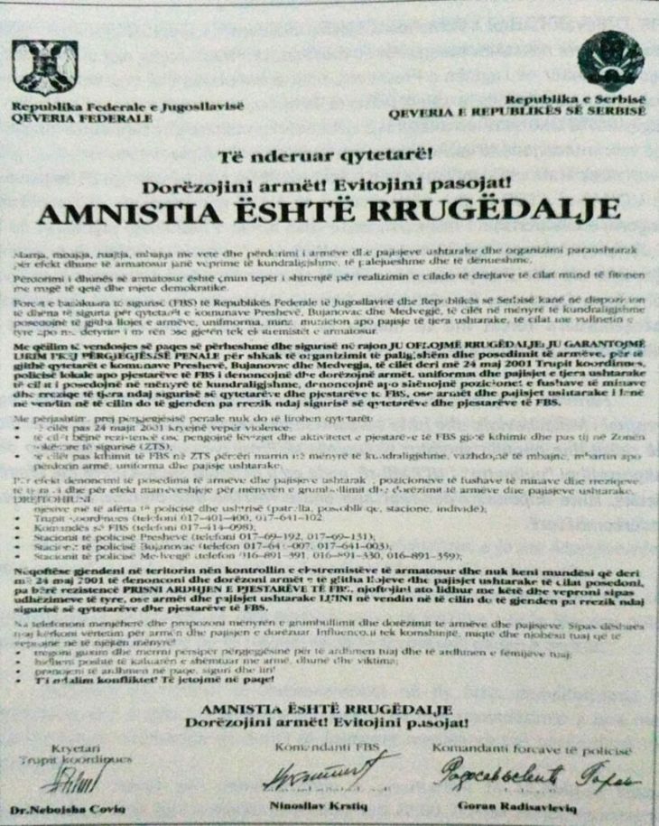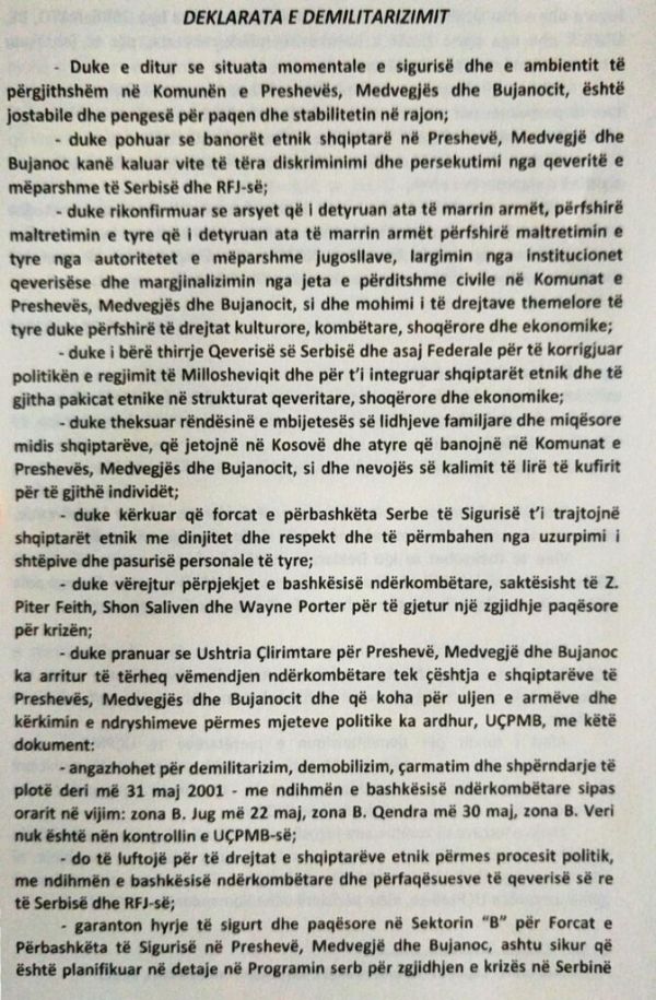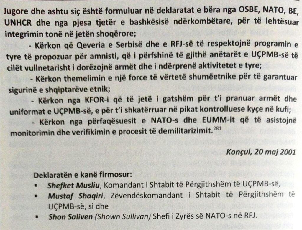 Ne, Shqiptarët, për shkak diskriminimit ishim në një kryengritje të armatosur dhe është formuar UÇPMB-ja, dhe ne do të duhej paraqitur e shfaqur paknaqësi mbi zbatimin.