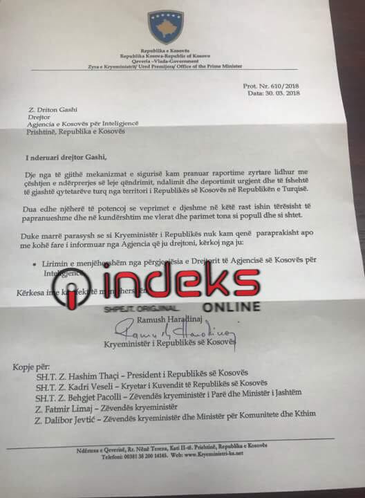 Në njoftim pretendohet se i dyshuari në prill të vitit 1998 i është bashkuar shtabit lokal të UÇK-së për fshatin Romajë në komunën e Prizrenit dhe se si pjesëtar i brigadës 138 “Agim Ramadani” ka marrë pjesë në sulmin ndaj posti kufitar serb në Koshare në vitin 1999.