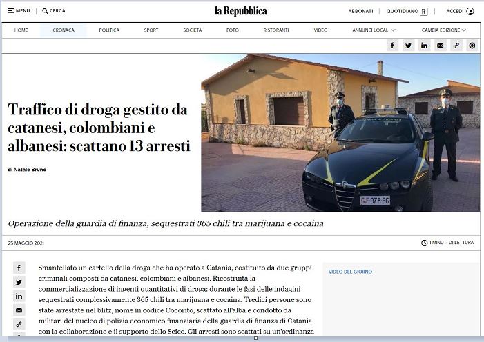 Shkatërrohet banda shqiptaro-kolumbiane e trafikut të kokainës në Itali, sekuestrohen 365 kg drogë