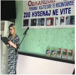 Në vazhdim drejtoresha e bibliotekës së Ulqinit znj. Ardita Rama, pra të pranishmit lexojë një tregim nga shumë tregime qe përmbante libri me titull :Mësuesi me sy të shtrembër, i cili ishte shumë interesant dhe ngërthente ne vetvete një ngjarje rren qethëse të vet autores e cila tregon identitetin e vet dhe të Flamurit shqiptar. Gjatë këtij leximi rren qethës shumë pati emocioe çka nuk na munguan as lotët nëpër faqe.