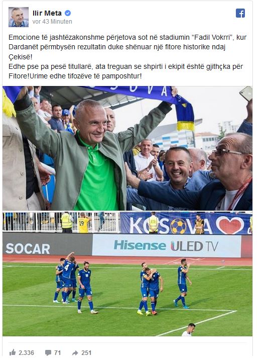 “Shpirti i ekipit është gjithçka për fitore!” Meta: Urime ‘Dardanëve’ për fitoren ndaj Çekisë