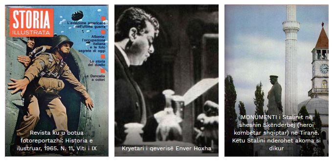 Bindja politike dhe sentimentale e shqiptarëve përmblidhet në një fjali: “Kushdo që është armik i Jugosllavisë është miku ynë”. Ky është kulti që Tirana vazhdon të adhurojë: Stalinizmi. Këtu buron besnikëria ndaj mitit të diktatorit të kuq. Në qytetet shqiptare, statuja e Stalinit qëndron madhështore në sheshet kryesore. Për të parë statujat e tjera, sot, duhet të shkojmë në Kinë, ose në Gjeorgji ku gjendet atdheu i Marshallit Stalin. Në Tiranë, monumenti i tij mbizotëron sheshin Skënderbej (heroi kombëtar i pavarësisë shqiptare kundër turqve) dhe që duket se po sfidon çdo stuhi ideologjike. Në aeroport, Stalini kapardiset mbi bare dhe mbi një seri fotografish përkujtimore, me diçitura me germa cirilike.