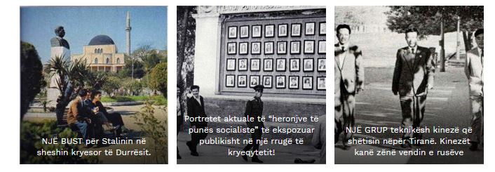 Në kohën e sovjetizimit të Shqipërisë, rusët kishin tre mijë veta në Tiranë. Nga ana tjetër, kinezët janë të kënaqur me dyqind specialistë, të cilët, kryesisht janë të aftë të jenë të padukshëm, dhe nëse kalojnë me veturë në qendrën e qytetit, e bëjnë me perde të ulura. Prania e Kinës ndihet më tepër nga shenja të tjera, për shembull në parullat (të vendosura në çdo pemë ose shtyllë telefoni përgjatë rrugës së hyrjes për në Tiranë) që himnizojnë miqësinë shqiptaro-kineze.