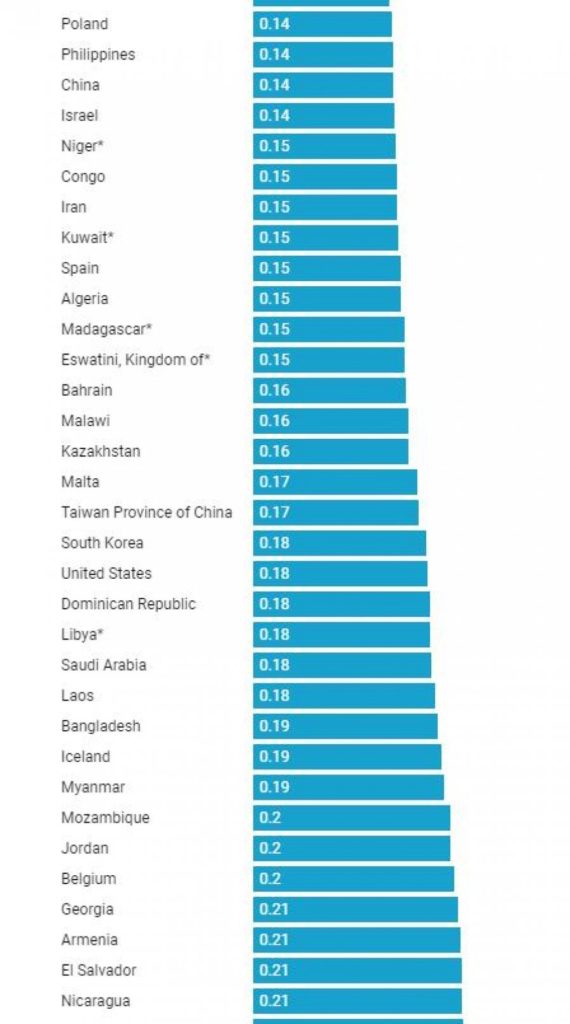 Në të kundërt, 7 vende të BE-së raportuan një intensitet të shpenzimeve për R&D më të ulët ose të barabartë me 1%: Rumania dhe Malta (nga 0.5% secila), Qipro (0.7%), Bullgaria (0.8%), Letonia (0.9%), si dhe Sllovakia dhe Luksemburgu (1.0%).