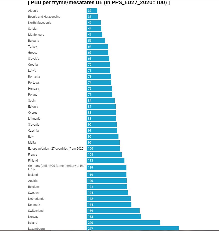 Shqipëria, sërish e fundit në Europë për të ardhurat për frymë dhe konsumin, asnjë hap para