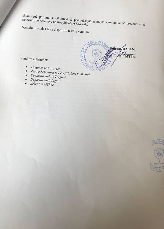 Për këtë arsye, njëra nga ngarkesat, është kthyer në vendin e origjinës, ndërsa ngarkesa tjetër është bllokuar me destinacion asgjesimin.
