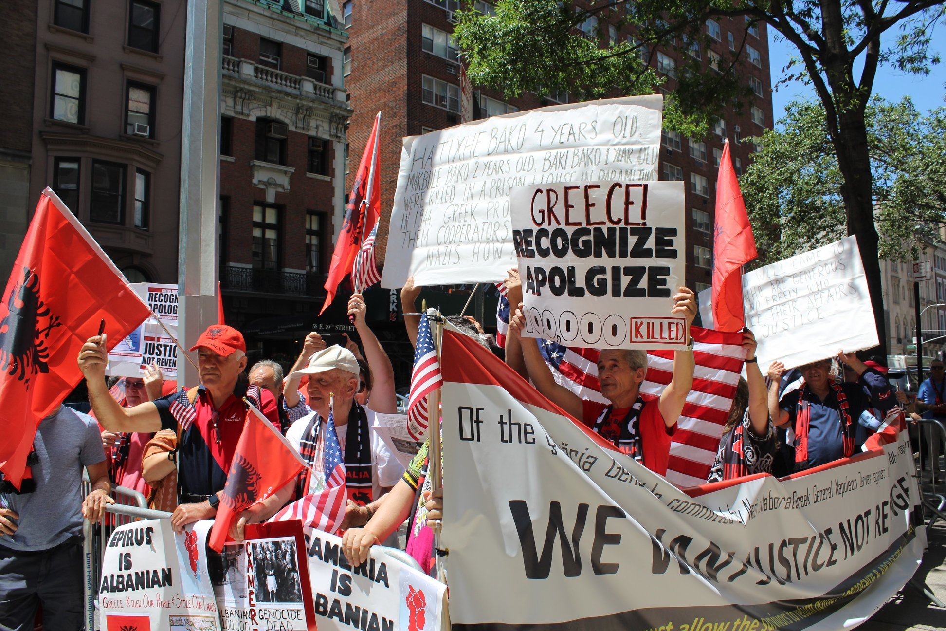 SHQIPTARË DHE GREKË PËRBALLEN NË PROTESTËN E 75 VJETORIT TË MASAKRAVE GREKE NË ÇAMËRI – Nga DALIP GRECA/DIELLI