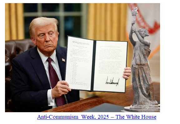 Më 7 Nënntor, 2025, Presidenti i Shteteve të Bashkuara Donald Trump ka shpallur, zyrtarisht, javën 2-8 Nëntor 2025, si Java e Anti-Komunizmit. Anti-Communism Week, 2025 – The White House. Deklarata e Presidentit Trump ka për qëllim të kujtojë viktimat e regjimeve komuniste dhe të ritheksojë kundërshtimin e vazhdueshëm të Amerikës ndaj komunizmit.