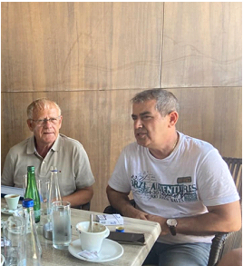 Arritën pas pesë minutash dhe zumë vend ne taracën e shtëpisë sime ngase brenda bënte vapë. Pas mirëseardhjes dhe përshëndetjeve të ngrohta, unë i qerasa me nga një raki kumbulle për t’i pritur kafet.