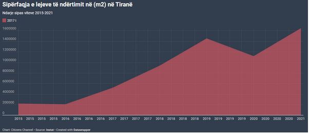 Vitin e shkuar (2021) në Tiranë, autoritetet miratuan një sipërfaqe ndërtimi për ndërtesa të reja 8 herë më e madhe, krahasuar me sipërfaqen e miratuar në vitin 2016: vitin e fundit përpara miratimit të Planit të Përgjithshëm Vendor (TR 030). Në tre vitet e fundit, sipërfaqja e miratuar në Tiranë arriti në 4.2 milionë m2. Ende nuk është e qartë se në ç’raport mes tyre do të jenë sipërfaqet e betonizuara me ato natyrore pas realizimit të ndërtimeve.