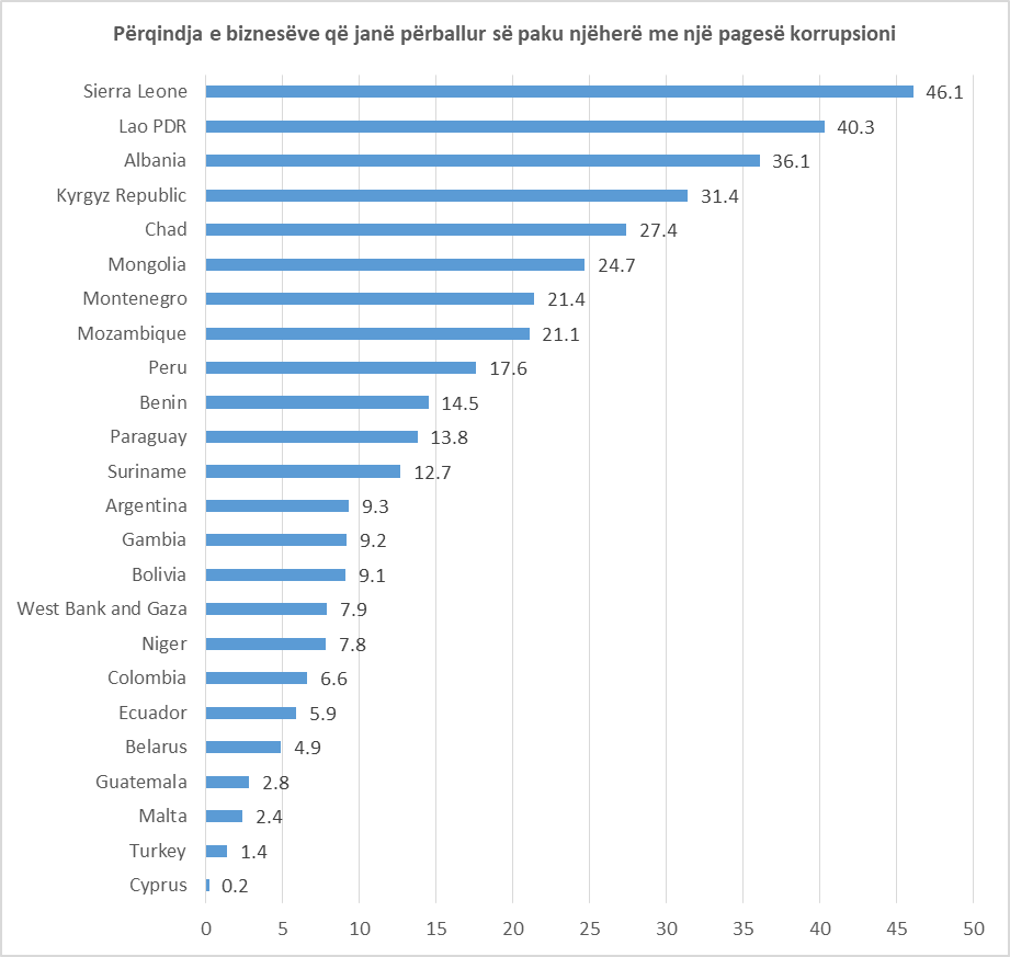 Me Sierra Leonen, Shqipëria kryeson renditjen globale të BB për tarifat e korrupsionit që paguajnë bizneset (tabela)