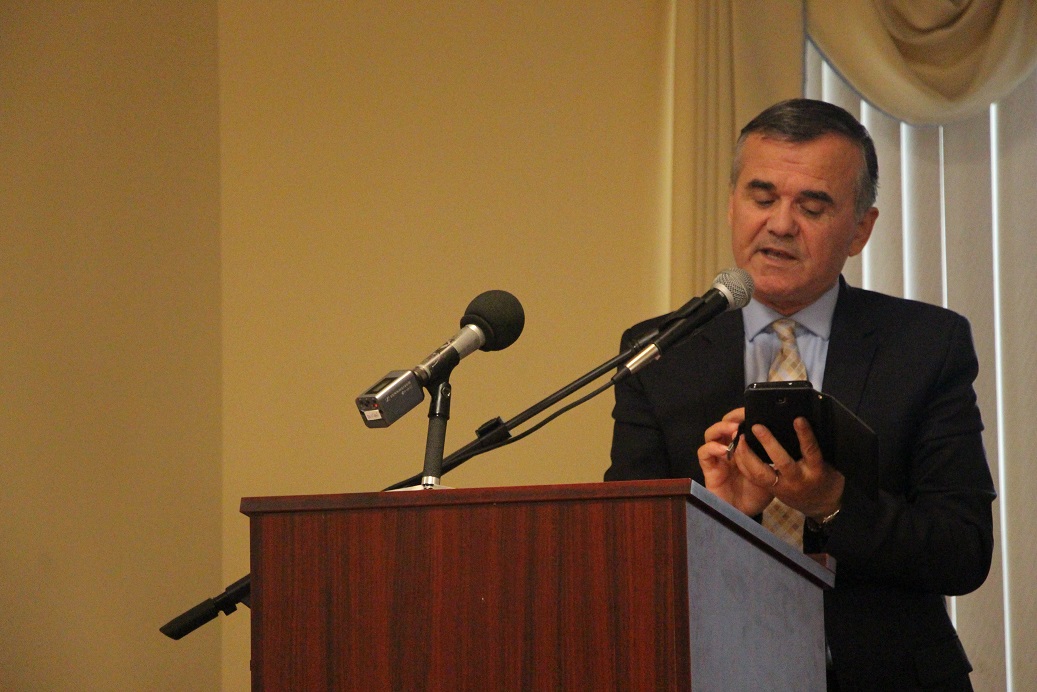 Kur u mblodhëm, pamë se ishim shqiptarë nga të gjitha trevat tona, vërtet Shqipëria natyrale, etnike, – vetëm në SHBA ndodh kjo, –  dhe mes nesh erdhi me bashkëshorten e tij dhe kongresmeni i shquar, me origjinë arbëreshe, Joe DioGuardi, që i kushtoi jetën çështjes shqiptare, çlirimit të Kosovës.
