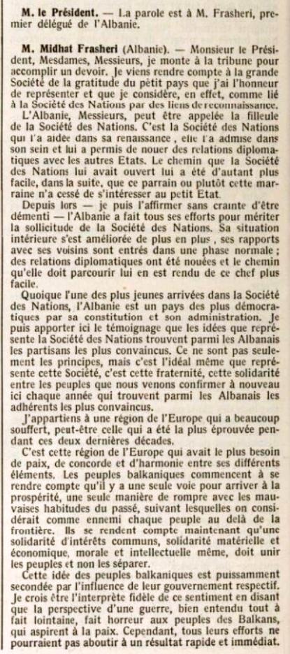 Société des nations (1923)- Fjalimi i plotë i Mit’hat Frashërit në Lidhjen e Kombeve (Dokumenti)