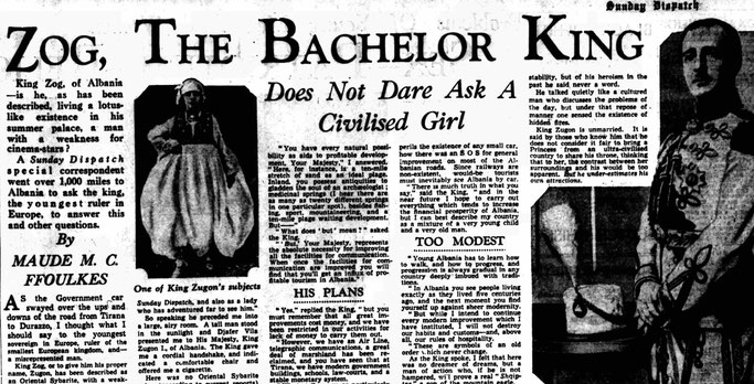 “Sunday Dispatch” ka botuar, të dielën e 8 tetorit 1933, në faqen n°11, intervistën ekskluzive asokohe me Mbretin Zog I në Durrës, të cilën, Aurenc Bebja, nëpërmjet Blogut “Dars (Klos), Mat – Albania”, e ka sjellë për publikun shqiptar :