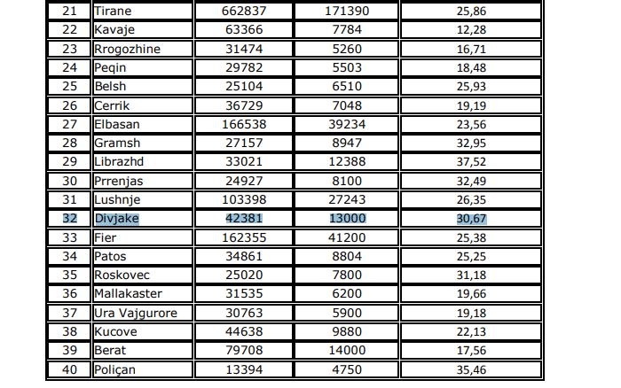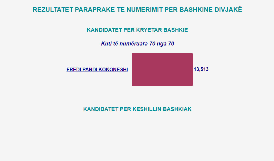 Ndërsa në tabelën e publikuar sot nga KQZ, në bashkitë që ka përfunduar procesi i numërimit, shihet sesa është numrit i votave që kanë fituar kandidatët.