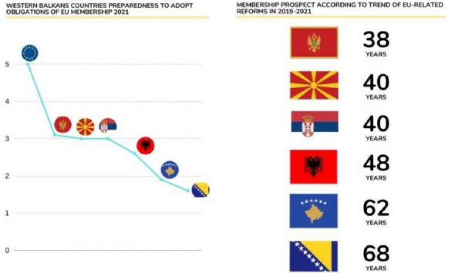 Studimi: Shqipëria mund të anëtarësohet në BE pas 48 vitesh November 11, 2021 “Shqipërisë do t’i duhen të paktën dhe 48 vite për t’u bërë anëtare e Bashkimit … Read More twitterFollowfacebooklinkedin LEXO MË SHUMË