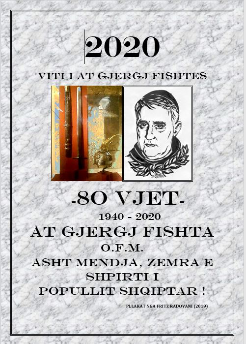 XLVII – 2020 VITI I AT GJERGJ FISHTËS – ESHTNAT E AT GJERGJ FISHTËS O.F.M. JANË NË RRËMAJ!… – Nga Fritz RADOVANI October 31, 2020 XLVII – 2020 VITI I AT GJERGJ FISHTËS – ESHTNAT E AT GJERGJ FISHTËS O.F.M. … Read More twitterFollowfacebooklinkedin LEXO MË SHUMË