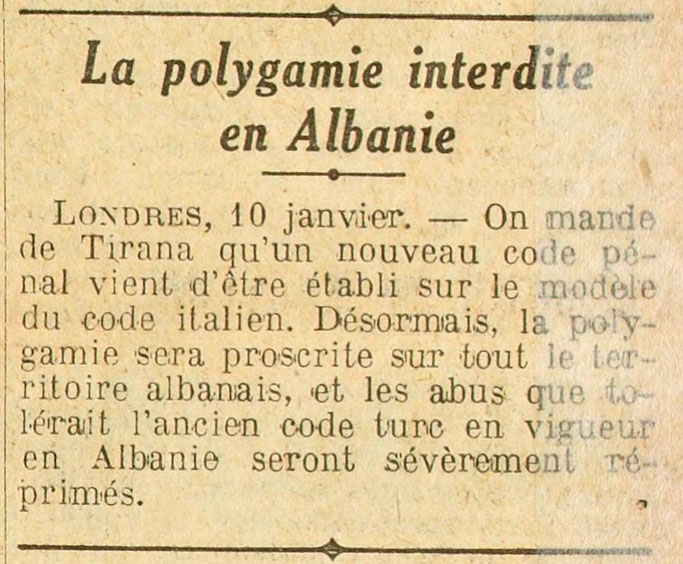 Excelsior (1928) – Poligamia ndalohet zyrtarisht në Shqipëri June 12, 2019 Burimi : gallica.bnf.fr / Bibliothèque nationale de France Nga Aurenc Bebja*, Francë – 12 Qershor 2019 … Read More twitterFollowfacebooklinkedin LEXO MË SHUMË