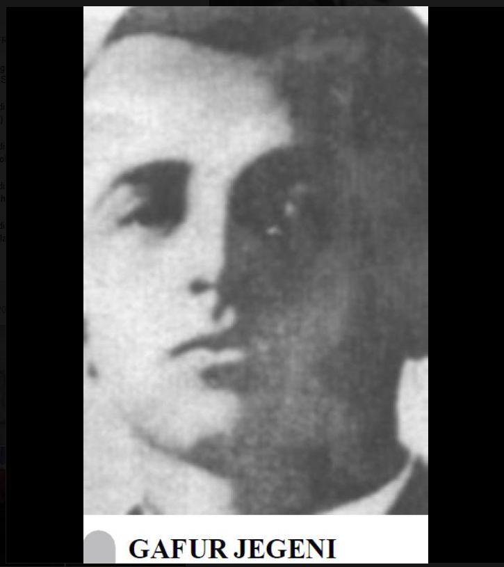 Gafur Jegeni – pushkatohet si pjesëmarës në hedhjen e bombës në ambasadën sovjetike October 26, 2015 Gafur Jegeni – Lindur ne Dibër 1908. Kreu Akademine ushtarake Rome. Si antifashist internohet ne … Read More twitterFollowfacebooklinkedin LEXO MË SHUMË