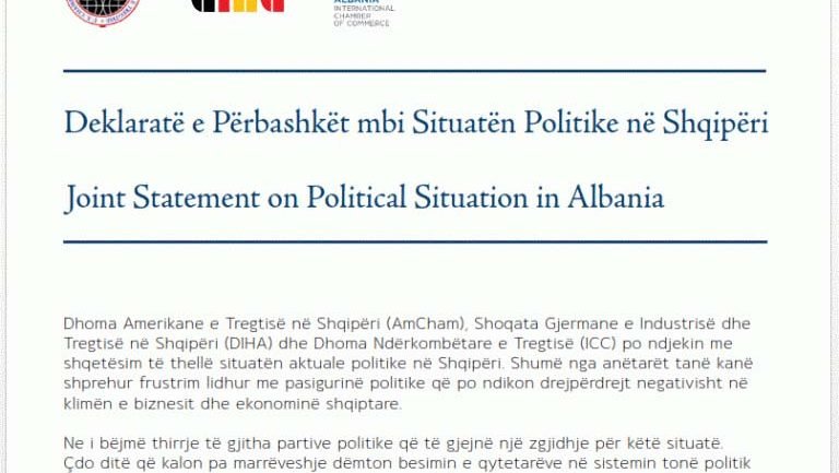 Dhoma Amerikane: Bie treguesi i biznesit në Shqipëri June 1, 2016 Shqipëri, sondazhi i Dhomës Amerikane të Tregtisë tregon përkeqësim të ndjeshëm në perceptimin e klimës … Read More twitterFollowfacebooklinkedin LEXO MË SHUMË