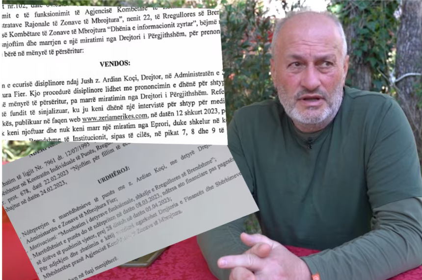 Pushohet nga puna drejtori i Parkut Kombëtar Divjakë-Karavasta, pas një interviste në Zërin e Amerikës March 9, 2023 Raimond Kola Drejtori i Parkut Kombëtar Divjakë-Karavasta, Ardian Koçi u pushua nga puna pas një … Read More twitterFollowfacebooklinkedin LEXO MË SHUMË