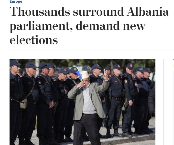 Mediat e huaja për protestën: Mijëra vetë rrethojnë Parlamentin e Shqipërisë, kërkojnë zgjedhje të reja March 5, 2019 “Mijëra protestues që mbështesin opozitën e Shqipërisë kanë rrethuar parlamentin, duke kërkuar dorëheqjen e qeverisë … Read More twitterFollowfacebooklinkedin LEXO MË SHUMË