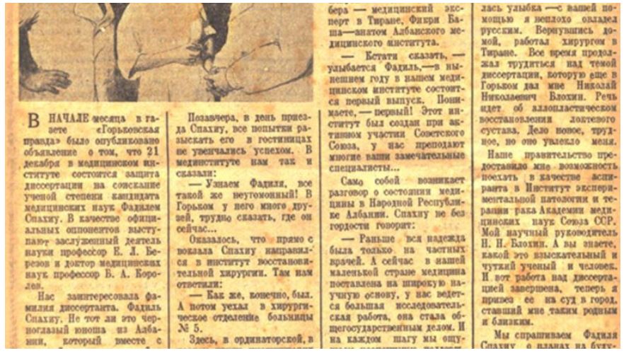 Media ruse: “Fadil Spahiu mbron disertacionin” December 4, 2018 Në fillimin e muajit, në gazetën “Pravda” të qytetit Gorki u botua njoftimi se më … Read More twitterFollowfacebooklinkedin LEXO MË SHUMË
