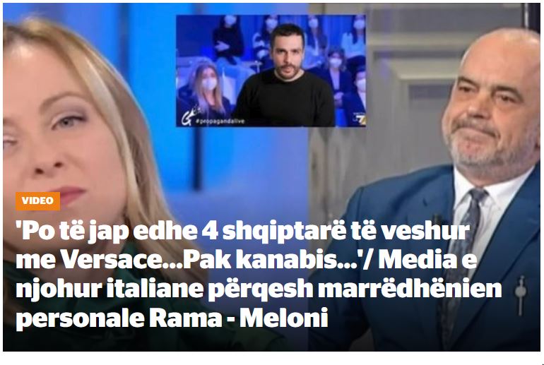 Video – ‘Po të jap edhe 4 shqiptarë të veshur me Versace…Pak kanabis…’/ Media e njohur italiane përqesh marrëdhënien personale Rama – Meloni December 16, 2023 Episodi i “C’è Costa per Te” i drejtuar nga Alessio Marzilli ka ribashkuar momente të … Read More twitterFollowfacebooklinkedin LEXO MË SHUMË