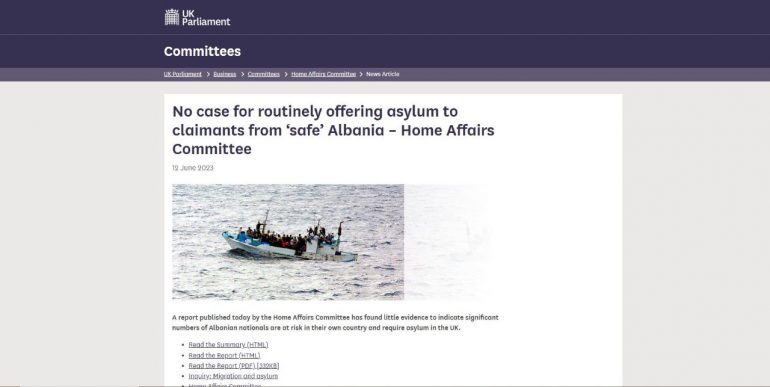 Raporti i ri Home Office në Britani: Nuk pranojmë më asnjë kërkese për azil nga shqiptarët! June 12, 2023 Komisioni i Çështjeve të Brendshme i Home Office në Britanisë së Madhe ka dalë me … Read More twitterFollowfacebooklinkedin LEXO MË SHUMË