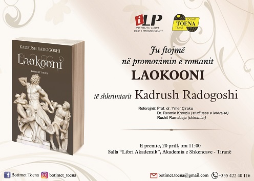 Ftesë: 20 prill, ora 11:00 – Promovimi i romanit të shkrimtarit Kadrush Radogoshi “Laokooni” April 19, 2018 Ftesë Ju ftojmë të bëheni pjesë e promovimit të romanit “Laokooni” të shkrimtarit … Read More twitterFollowfacebooklinkedin LEXO MË SHUMË