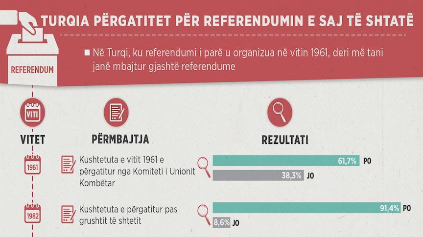 Numërohen gjysma e votave, 57 për qind pro ndryshimeve kushtetuese në Turqi (Foto) April 16, 2017 Janë numëruar 51.14% të votave të referendumit për ndryshime kushtetuese të cilat i dhurojnë presidentit … Read More twitterFollowfacebooklinkedin LEXO MË SHUMË